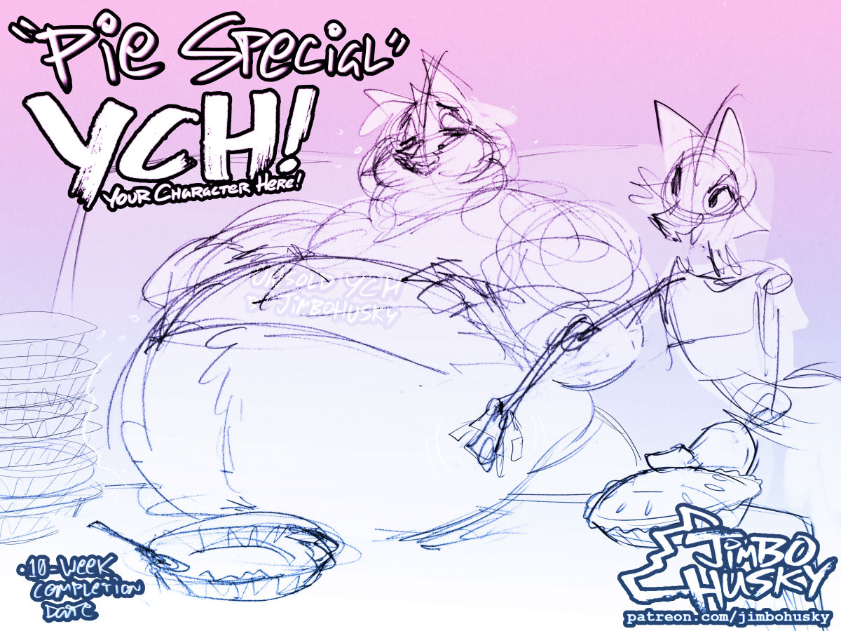 - Original theme I had in mind for this was that a character is either doing a pie-eating challenge at a diner, or taking advantage of a promotional special price and just seeing how many pies they can eat for the hell of it - and that the server is either impressed by their enthusiasm, or pressuruing them to have more pies, perhaps "on the house".